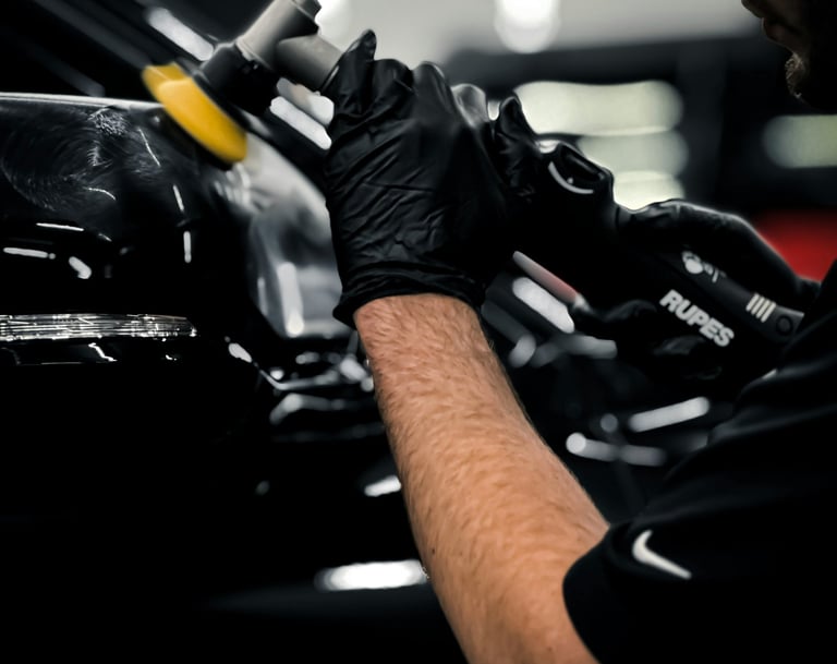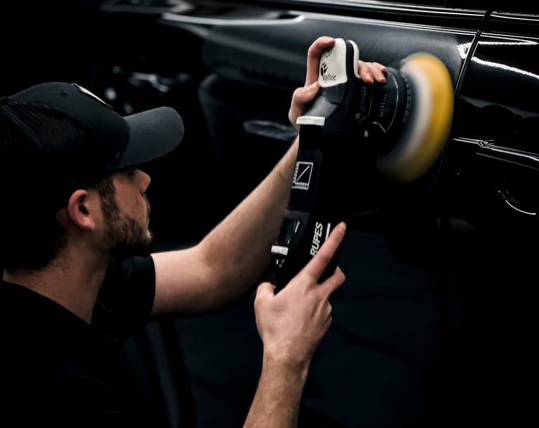 After the clay bar, we use a specialized surface prep spray to remove any remaining residues, ensuring the ceramic coating bonds cleanly and lasts longer.